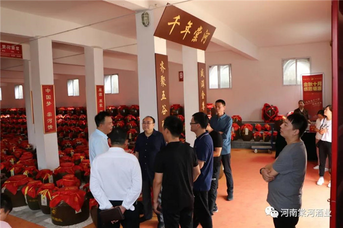 河南棠河酒業公司董事長常文輝首先向北京儒商會一行表示熱烈的歡迎,并陪同先后到公司黨建室、榮譽室、發酵釀造車間、藏酒坊、原酒儲存庫等進行了詳細的參觀,并向儒商會一行介紹了棠河厚重的文化和發展歷程。